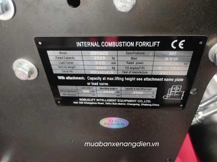 Thông số kỹ thuật xe nâng dầu CPCD25 Noblelift