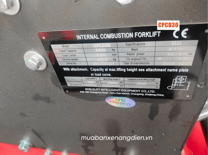 Thông số kỹ thuật xe nâng dầu CPCD30 Noblelift